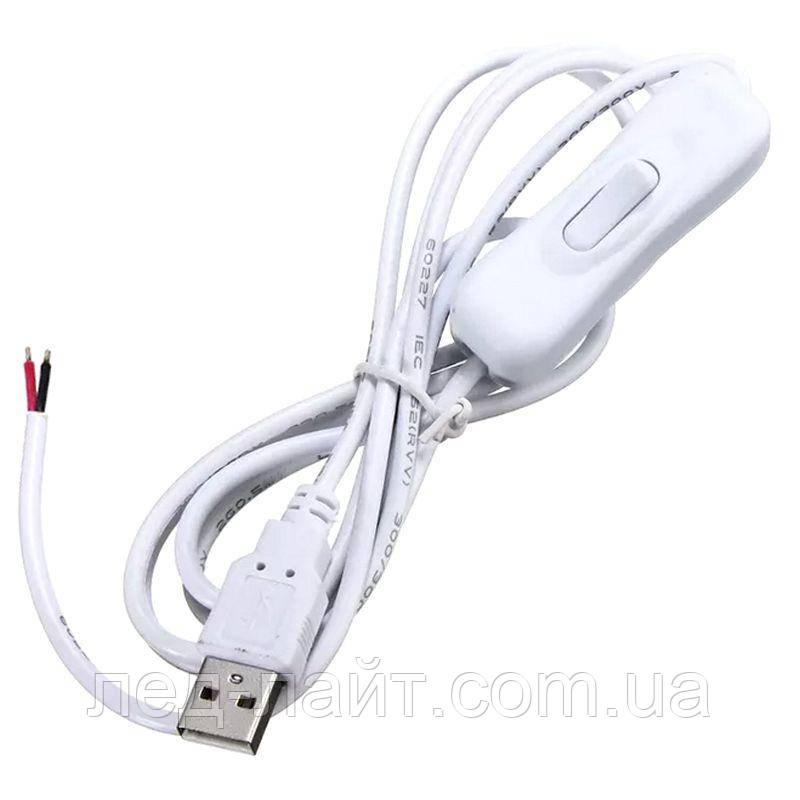 Вимикач виконаний у корпусі білого кольору на білому дроті із USB штекером на одному кінці. Загальна довжина дроту з вимикачем – 1 метр. Вимикач розташований посередині кабелю, приблизно.